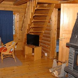 Jukola ist ein für sechs Personen ausgestattetes Blockhaus mit einer Wohnfläche von ca. 70 m². In den Schlafzimmern des Erd- und Obergeschosses gibt es jeweils Betten für zwei und zusätzlich gibt es in Schlafsofa im Wohnraum. 2014 wurde die Küche des Ferienhauses gründlich renoviert. Aus dem Obergeschoss kann man auf die Veranda gehen, von der sich die Aussicht auf den Fluss Pielisjoki eröffnet. Auf dem Hof befindet sich eine separate Strandsauna und ein Grillunterstand. In Jukola sind auch Haustiere willkommen.