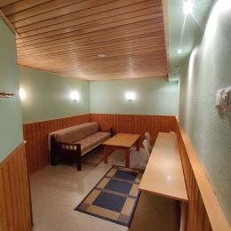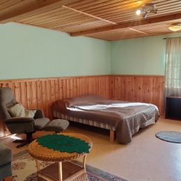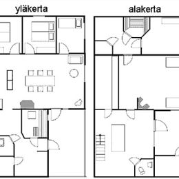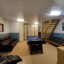 Das Obergeschoss beherbergt Schlafplätze für sechs Personen und kann separat gemietet werden. Außerdem befindet sich im Obergeschoss eine Holzsauna und ein geräumiges Badezimmer. Das Erdgeschoss steht nur den Mietern des Gesamten Hauses zur Verfügung. Dort befinden sich vier weitere Schlafplätze. Gegen einen Aufpreis können Mieter des gesamten Hauses die sich im Erdgeschoss befindenden Saunaräumlichkeiten und den Billardtisch nutzen. Das Erdgeschoss kann nicht separat gemietet werden. Auf dem Hof befindet sich eine Grillhütte.