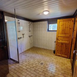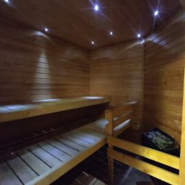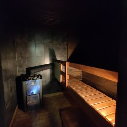 - abgetrennter Saunabereich mit elektrischem Ofen