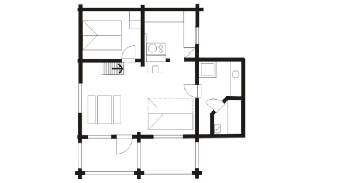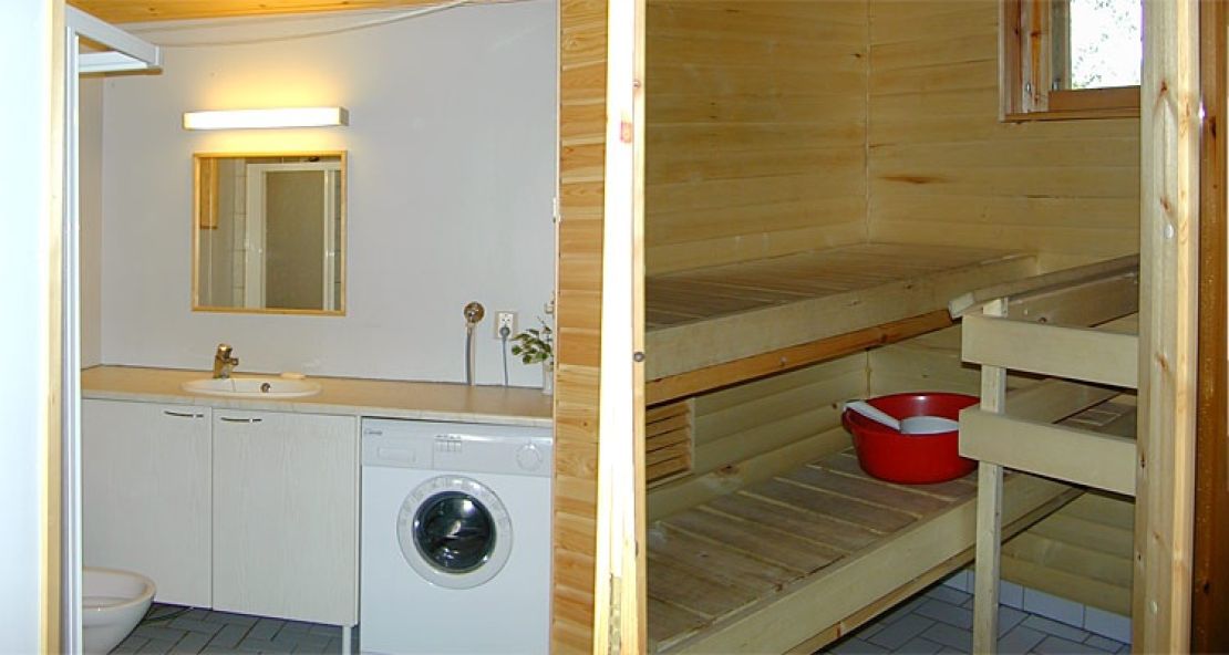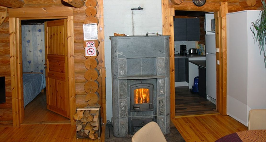 Sampola is a 4 + 2 person round log cabin. Built in 1992 it is the first and the most popular of the Sampo's Holiday Cabins. Living area of the cabin is ca 70 m². The bedroom and the sleeping balcony both have beds for two. Additionally there is a sofa bed in the living room. Massive hand carved logs and a soapstone fireplace create an authentic cabin atmosphere. There is also a sauna inside the cabin with a convenient electric stove. Outside the cabin there is a riverside sauna with a wood-burning stove. The kitchen in the cabin was renovated throughout in 2014.